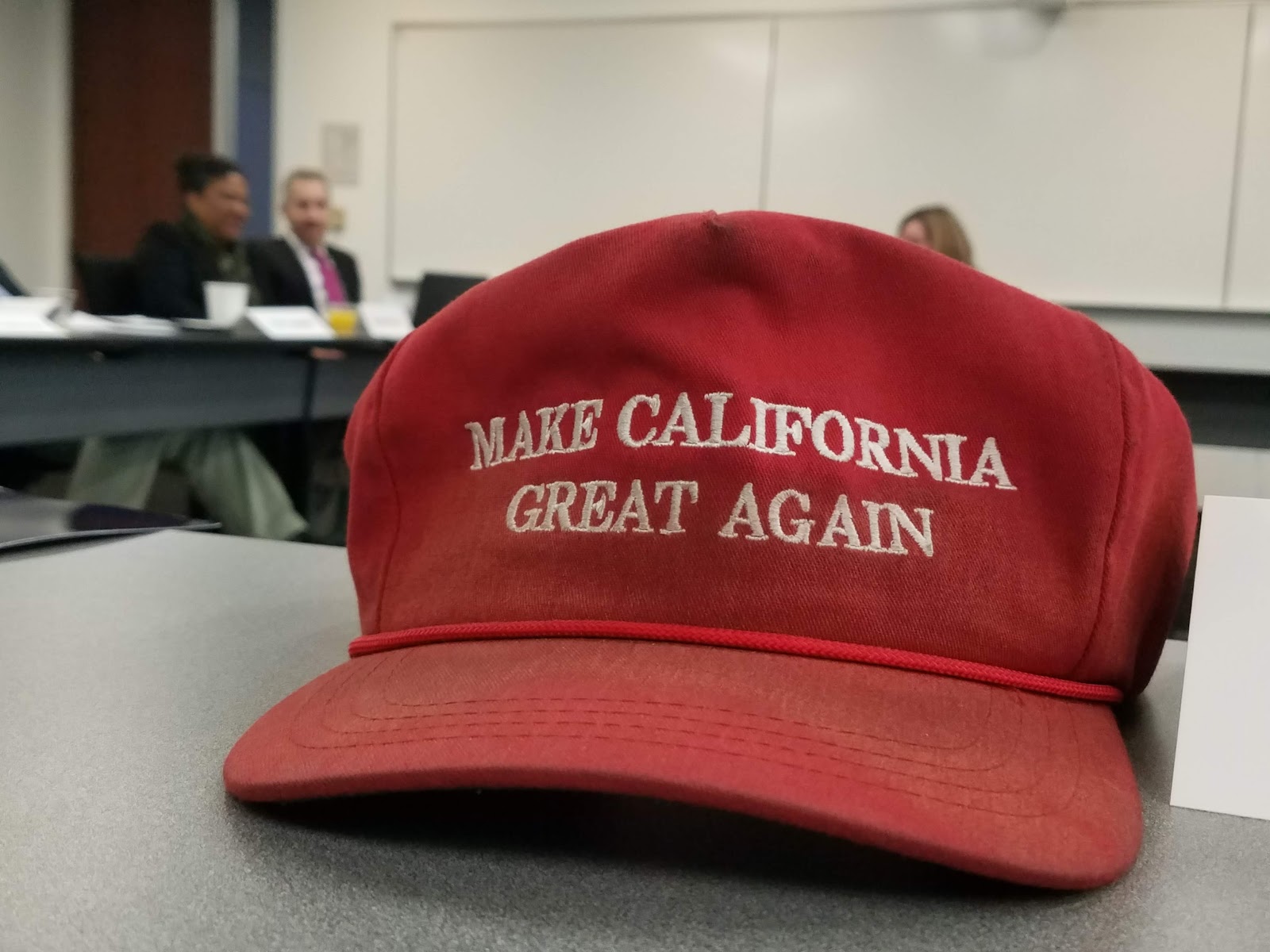 Of course, I had my Make California Great Again hat!