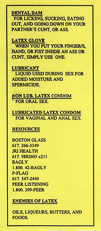 This “safe fisting” flyer was given out to kids at the 2000 GLSEN Boston “Fistgate” conference.